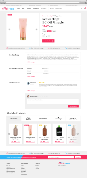 Vor der Entwicklung des Online Shop, erstellte WooMedia ein zielgruppenspezifisches Design unter Berücksichtigung der intuitiven Nutzerführung. Erwähnenswert sind das überarbeitete Logo und der moderne Einsatz von Schrifen und Farben zu Gunsten der Benutzerfreundlichkeit. Mittels Filter kommt der User schnell und zielgerichtet zum gewünschten Produkt und lässt sich mit wenigen Klicks dem Warenkorb hinzufügen. Der Check-Out des B2B-Shop wurde auf drei Steps definiert.
